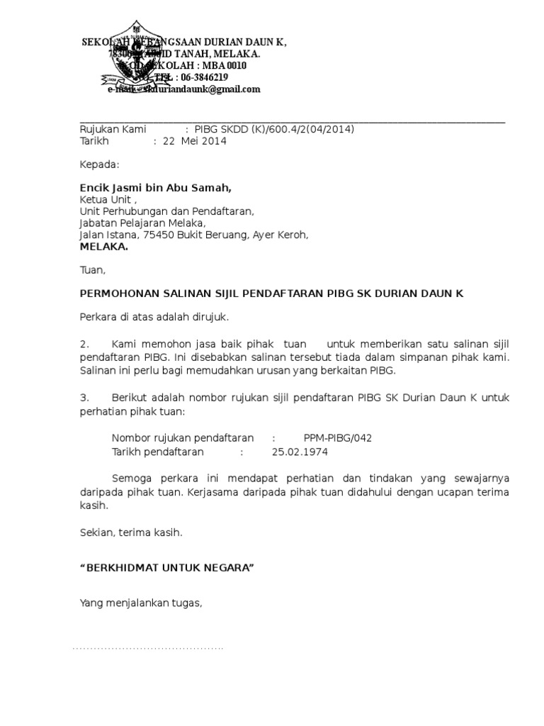 Surat Mohon Salinan Sijil Pibg Skddk 2014 Pdf